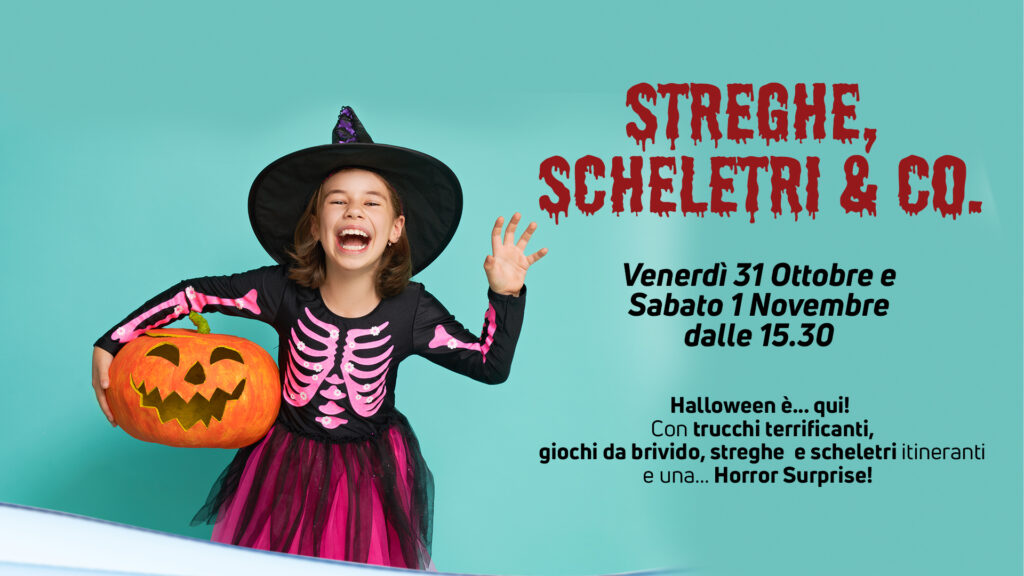 Preparati a due pomeriggi da… brivido! 31 ottobre e 1 novembre dalle 15:30 Ti aspettano trucchi terrificanti, giochi paurosi, streghe e scheletri itineranti… e una vera horror surprise! Eventi gratuiti