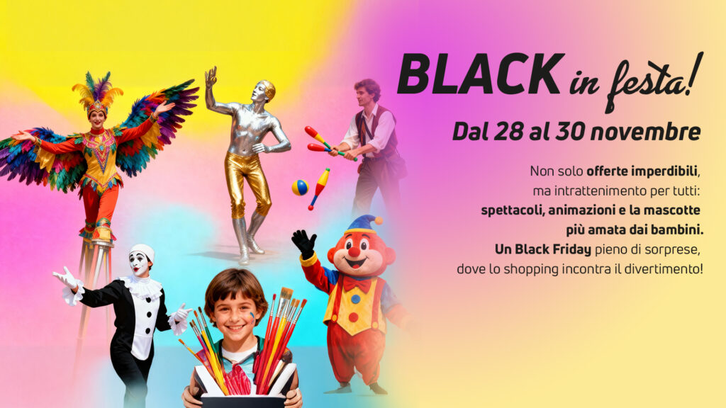 Artisti, performer, mascotte, giocolieri, mimi e attività per bambini ti aspettano per vivere un Black Friday unico!
