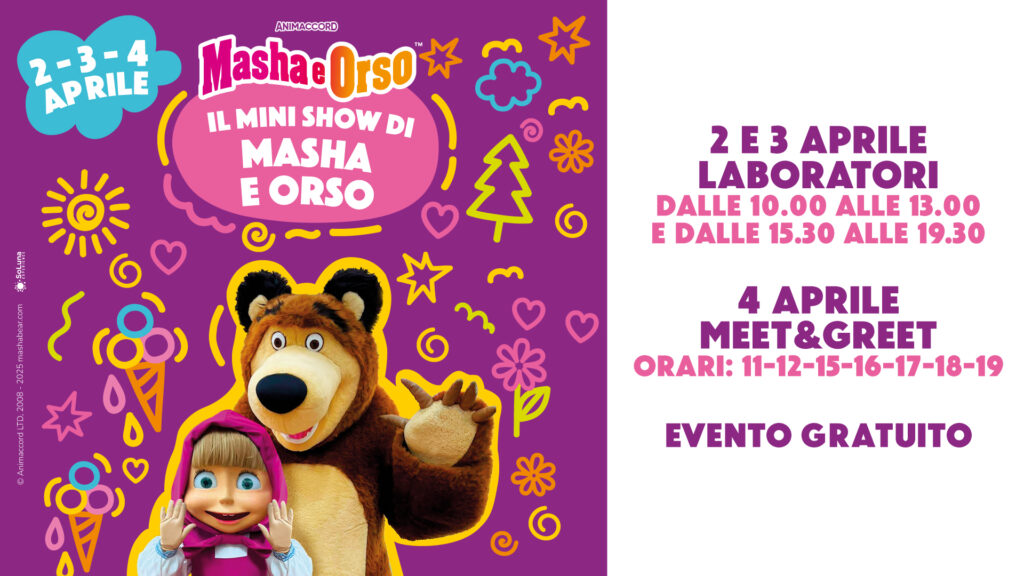 Tre giorni di divertimento dedicati ai più piccoli con il mini show di Masha e Orso, laboratori creativi e la possibilità di incontrare i protagonisti più amati dai bambini!